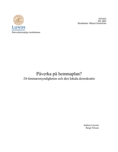title = {{Påverka på hemmaplan? 24-timmarsmyndigheten och den lokala demokratin}},